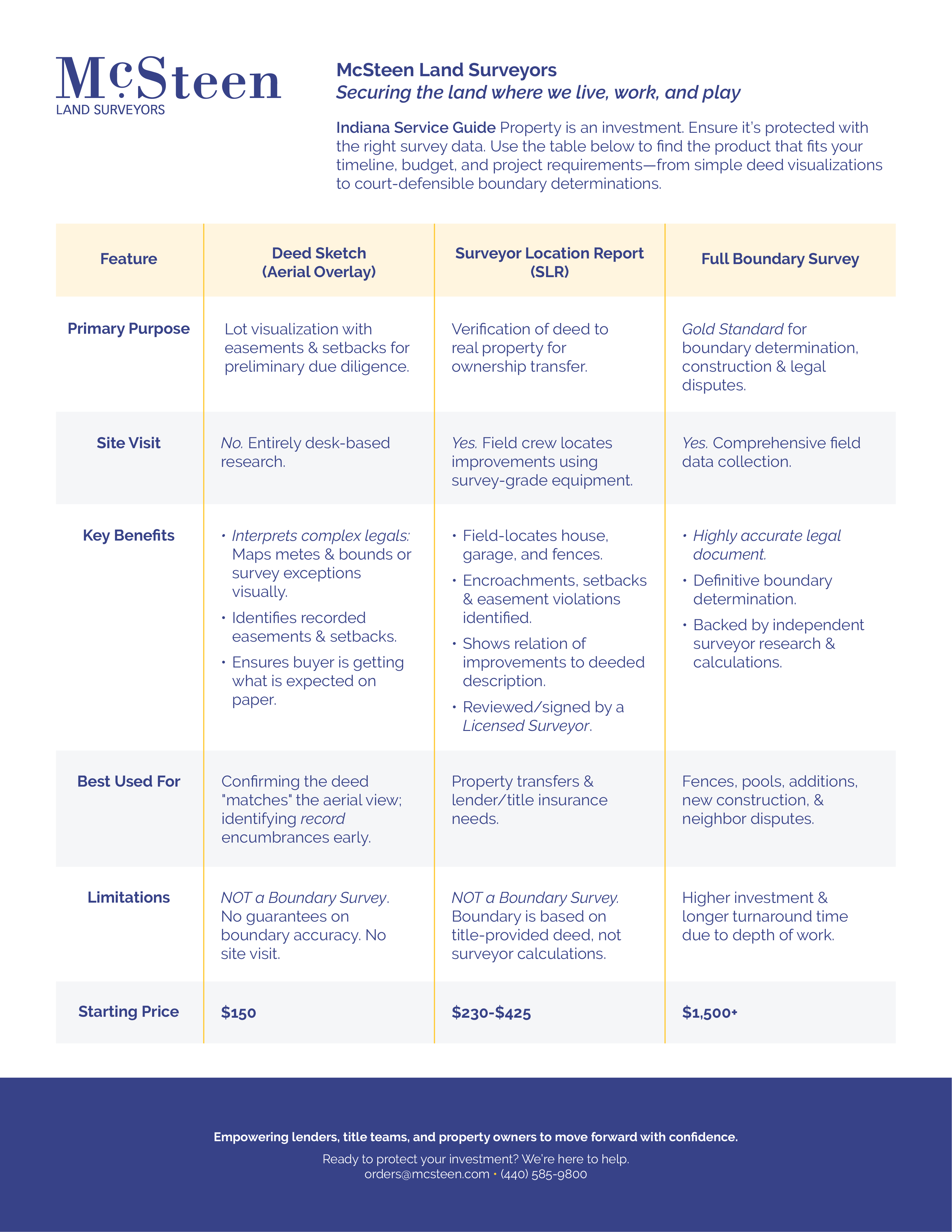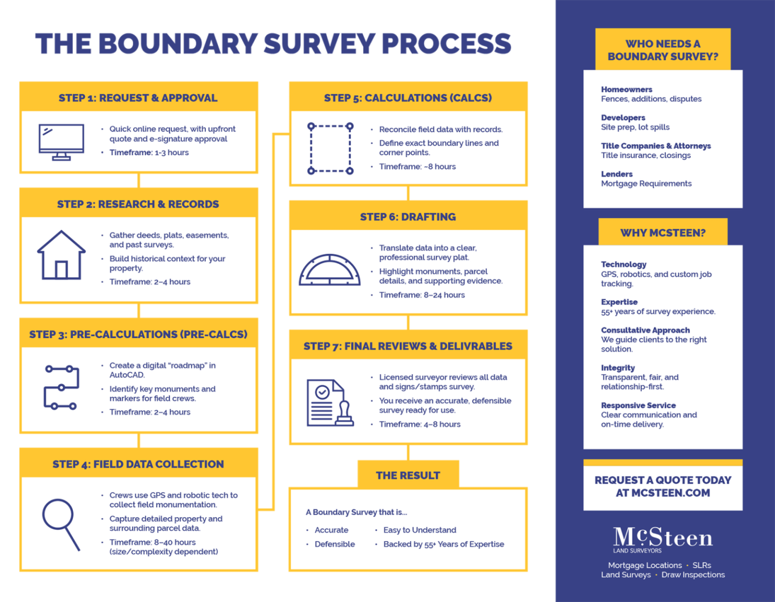 In addition to providing a variety of land services to our clients, we seek to be a leader in the industry. We do this by providing information and serving as a resource for the industry as a whole and our fellow professional surveyors. Check out our infographic library and don’t hesitate to contact us if there is anything else we can help with.